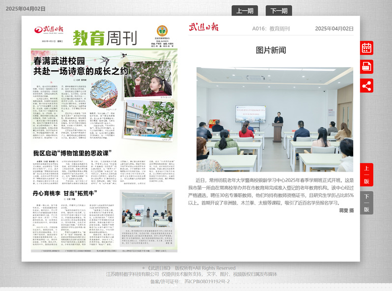 • 武進日報|常州紡院老年大學暨高校銀齡學習中心2025年...